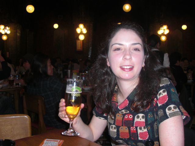 We queued briefly outside as the place was bustling with locals, I couldn’t see any other foreigners though. Once inside we were shown to our table. There was a rather chaotic atmosphere as waiters rushed back and forth shouting at each other and delivering giant tankards of beer and steaming plates of food to tables. Ordering didn’t turn out to be difficult at all. As seems to be the norm here the window was complete with intricate plastic models of all the dishes served and the menu had an attempt at an english translation (well I say that but they managed to make some of the dishes sound pretty unappetizing…..like the Mexican noodles with chorizo salt flavour). As a tourist all is expected of you is to point to the picture of what you want and indicate how many you want…..easy! My next challenge was to eat the noodles we ordered with chopsticks without looking like a complete idiot and depositing most of it on the table…..I have been in training for the last month or so but I am sad to say my technique still leaves a lot to be desired. Whilst sipping at my lager I look around at the locals and see to my relief that a good amount of slurping and shoveling seems to be an acceptable technique. When the food arrived it was delicious and we polished it off quickly. After another beer we decide that we can’t manage to stay awake much longer, David’s eyes look as big as saucers and I think he might actually fall asleep and drown if he orders another beer. We pay up and wander back to hotel, only momentarily distracted by the corner shop where we buy a haagan dazs icecream for dessert. Then it is off to bed for a well deserved night sleep!